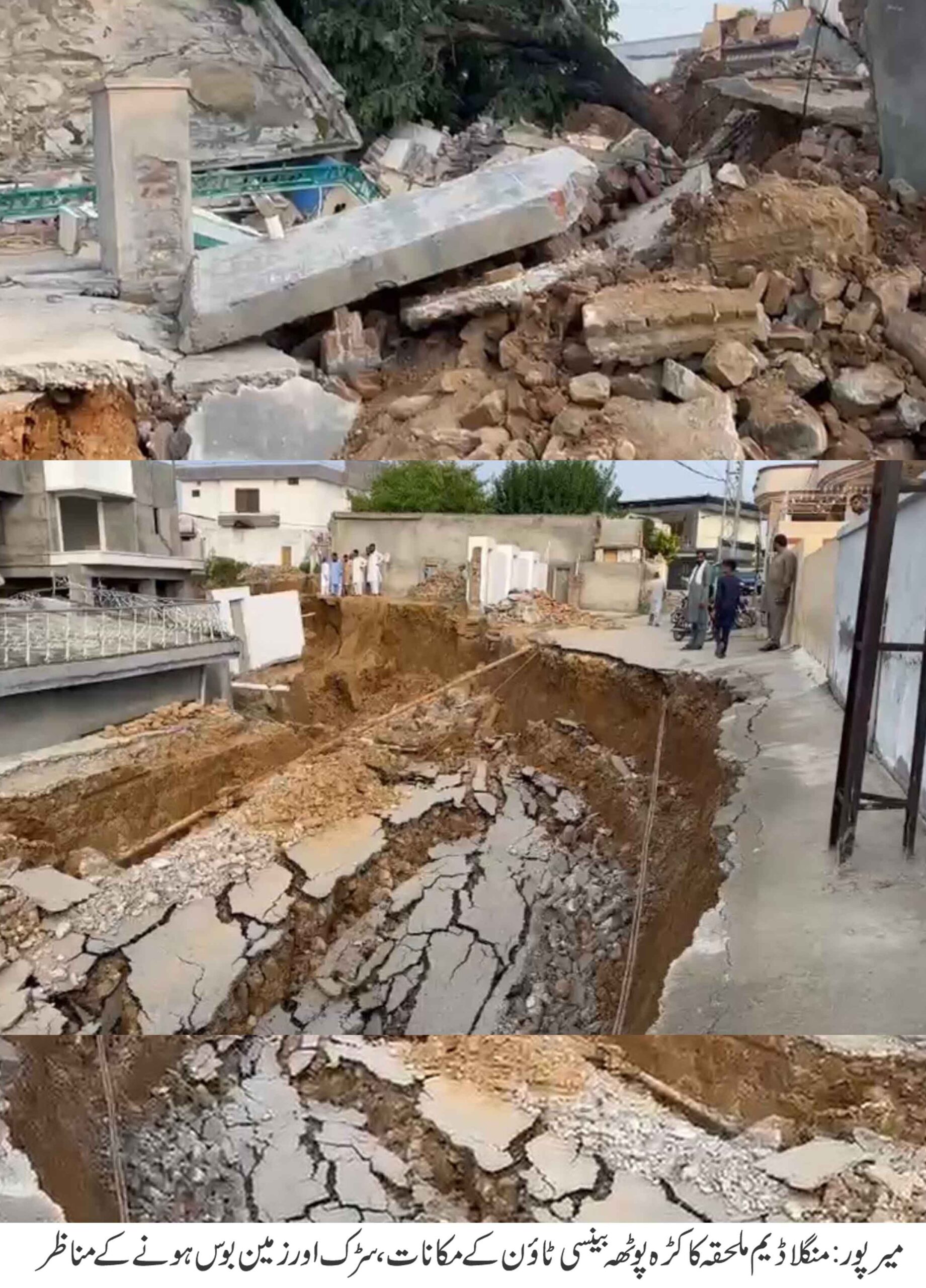 کمشنر میرپور ڈویژن چوہدری مختار حسین نے کہا ہے کہ منگلا ڈیم سے ملحقہ کاکڑہ پوٹھہ بینسی ٹاؤن کی زمین گزشتہ دس ماہ سے کمزور ہوکر سرک رہی تھی جس سے کم و بیش 27پختہ مکانات میں دراڑیں پڑ گئی تھی جبکہ گزشتہ روز کروڑوں روپے کے 12پختہ مکانات اور سڑک زمیں بوس ہوگے جس سے متعلق کمشنر میرپور ڈویژن نے جنرل منیجر منگلا ڈیم آرگنائزیشن واپڈا منگلا کو مکتوب تحریر کردیاجبکہ عوامی شکایات پراس سال کے وسط میں بھی کمشنر میرپور ڈویژن نے جنرل منیجر منگلا ڈیم آرگنائزیشن واپڈا منگلا کو مکتوب لکھا تھا جس میں کاکڑہ پوٹھہ بینسی کی اراضی نمبر خسرہ 349 میں واقع آبادی کے متاثر ہونے والے 27 مکان کے مالکان کو متبادل لاگت اور متبادل اراضی کی فراہمی کی تحریک کی گئی تھی۔